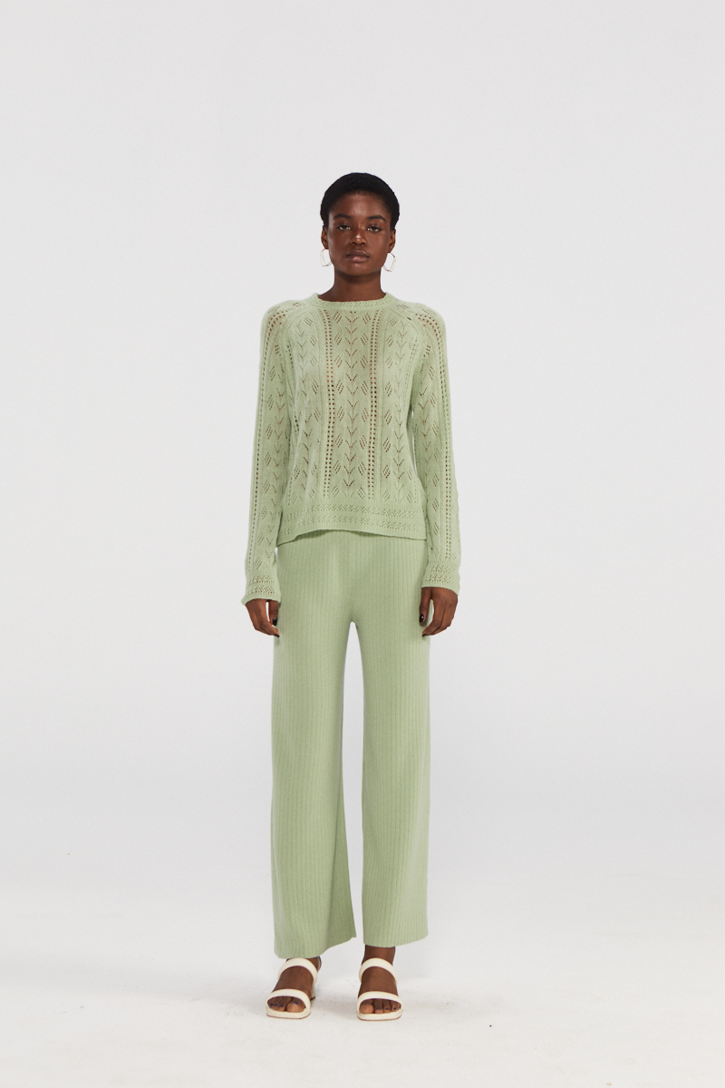 Hellgrüne Openwork Cashmere Top