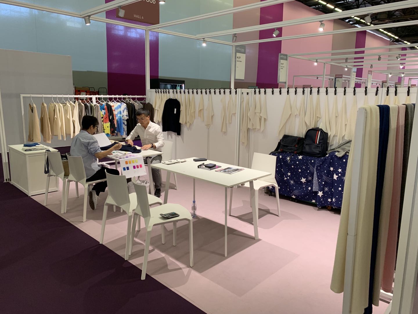 Wir stellten im September 2019 auf der Premiere Vision Paris aus. Wir haben einige unserer Beispiele auf der Messe gezeigt: einfache Strickpullover aus Kaschmir, lange Strickjacke aus Seidenkaschmir, Strickwaren mit Stickerei, Pullover mit Digitaldruck, Kaschmirpullover mit Krawattenfarbe usw.
